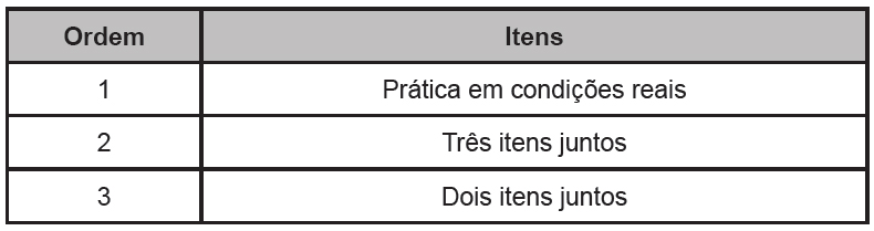 A ordem apresentado no questionário dos itens necessários para a consolidação dos conhecimentos durante o curso de Contabilidade são: prática em condições reais, prática simulada e a monografia. Conforme Tabela 2, após aplicação do questionário, os professores destacaram nessa seqüência: prática em condições reais nas entidades, os três itens juntos e dois itens assinalados, sendo que a maioria deu prioridade a prática simulada em laboratório e a monografia.
