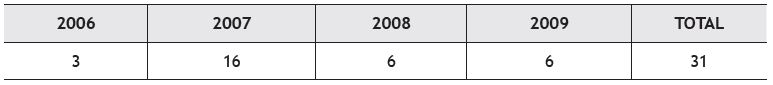O ano de envio dos projetos inovadores propostos pelas MPEIs catarinenses aprovados pelo PJZ da FINEP e o ano da liberação da primeira parcela do financiamento às empresas coincidem, pois a liberação da primeira parcela é efetuada aproximadamente 10 dias após a assinatura do contrato entre as partes (MPEI e FINEP). Por meio das informações constantes na Tabela 1, verifica-se que a maior parte (51,61%) dos projetos inovadores catarinenses teve início em 2007. Ressalta-se que o convênio entre a FINEP e a ACATE (parceira estratégica no Estado de Santa Catarina) foi firmando em agosto de 2006. Torna-se importante destacar que, dos 31 projetos inovadores catarinenses encaminhados para avaliação entre 2006 e 2009, 27 (87,10%) foram concluídos até o mês de realização da presente pesquisa (outubro/2009).