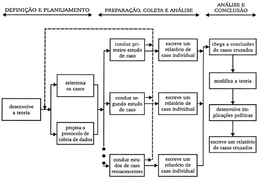 No diagrama seguinte, podemos ver a concepção de Yin para a elaboração de um fluxograma para um Estudo de Caso múltiplo: