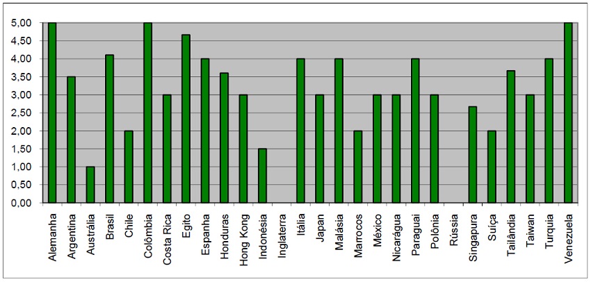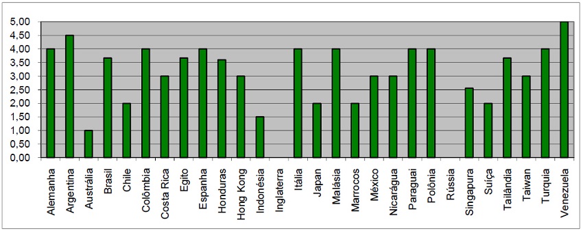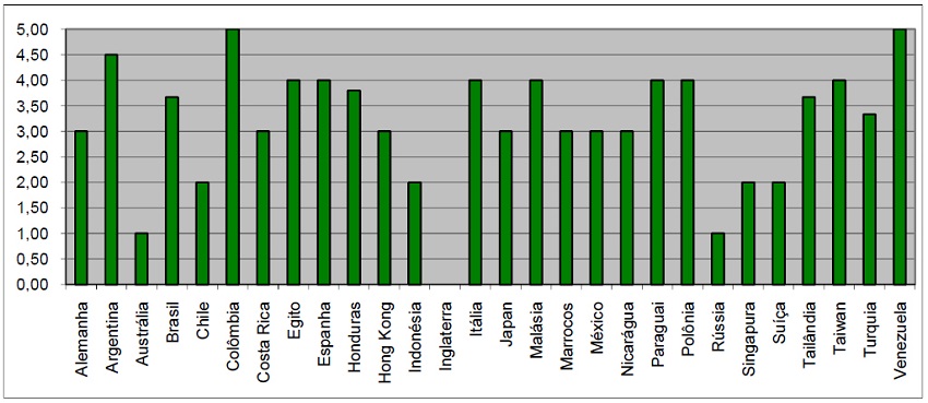Tais fatores foram selecionados, pois constituem características dos países analisados e poderiam trazer alguma correlação com os resultados obtidos. Tal fato não impede a análise com outros fatores, como por exemplo, o risco do país.