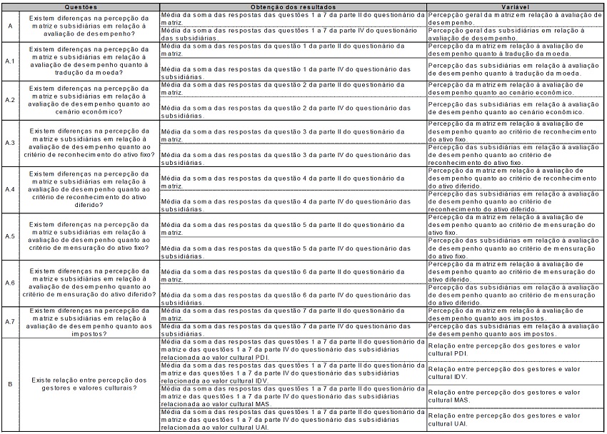 Conforme mencionado anteriormente, o presente trabalho visa pesquisar o alinhamento das percepções dos gestores das subsidiárias e da matriz na avaliação de desempenho das subsidiárias estrangeiras.
