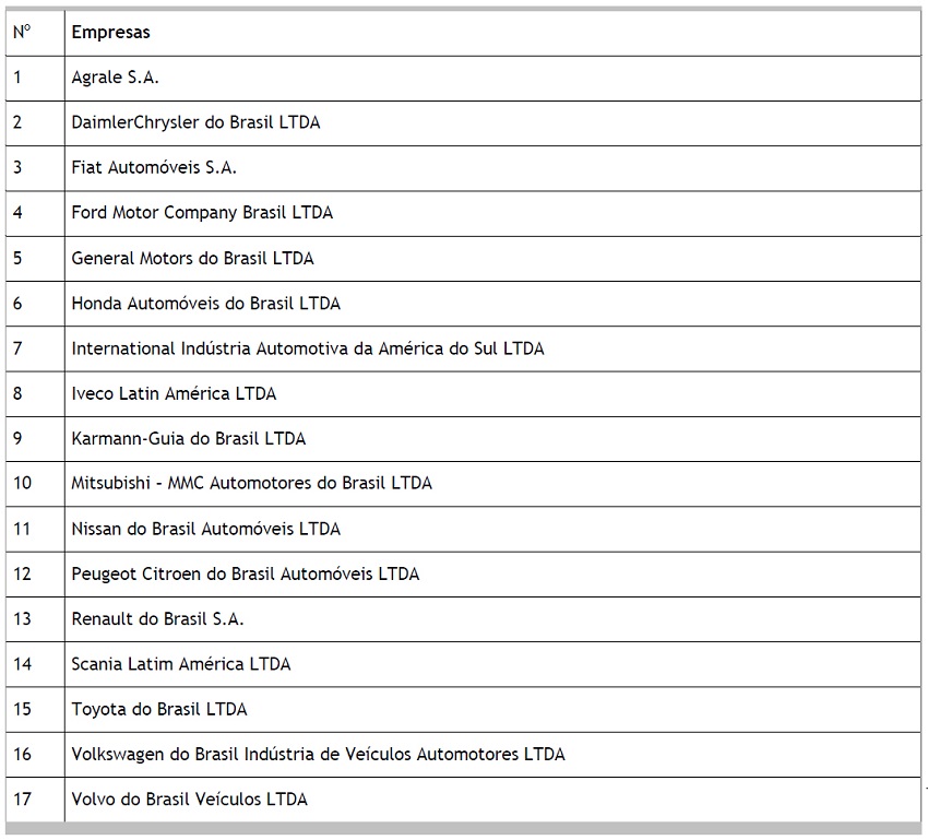 Como delimitação da pesquisa, foram selecionadas apenas as indústrias que produzem veículos comerciais para a população em geral, excluindo as indústrias que produzem especificamente veículos voltados para a área rural. A seleção resultou em 17 empresas, conforme Anexo 2, sendo que destas, duas utilizam as mesmas instalações fabris, Nissan e Renault, restando então para pesquisa um total de 16 empresas.