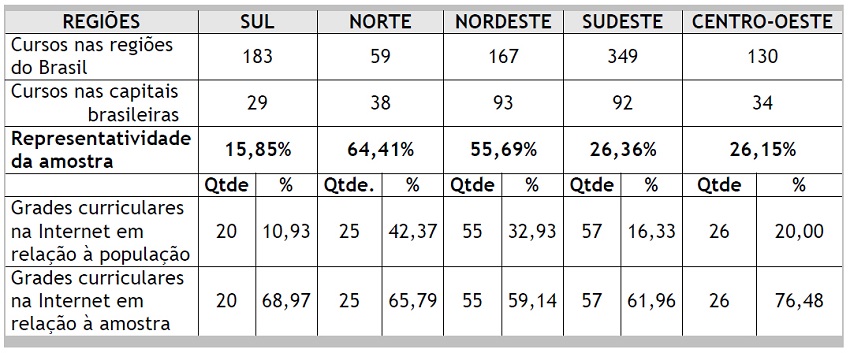 Foram analisadas as grades curriculares das 183 instituições, representando 63,99% da amostra das IES nas capitais brasileiras. Isso representa 20,61% do total de Instituições de Ensino Superior de todo o Brasil.