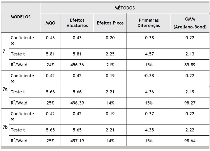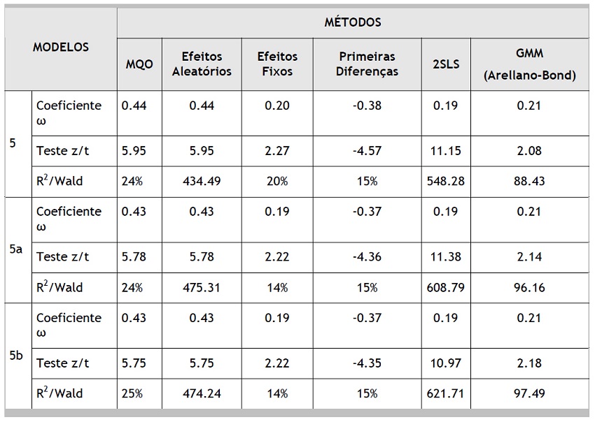 Os resultados satisfatórios, do ponto de vista estrutural, decorreram do uso do modelo GMM de Arellano-Bond, já que pela condição de defasagem entre as variáveis dependente e independente.