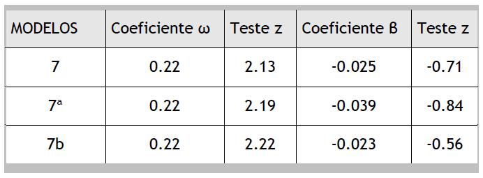 iii) Em seguida, foram inclusas as três variáveis de controle de modo a retirar o efeito que possivelmente provocam sobre o parâmetro de persistência (5b);