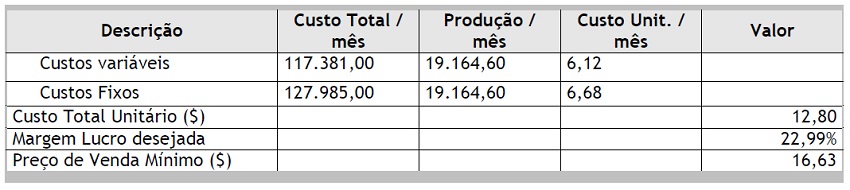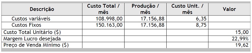 Neste estudo, supõe-se que a produção realizada pela Máquina 2, bem como os custos incorridos durante o mês, estão dentro dos níveis de eficiência aceitáveis e podem, portanto, serem utilizados como padrões para cálculo do preço de venda a ser praticado pela empresa.