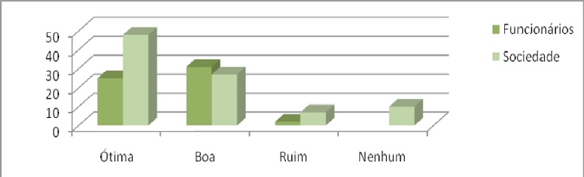 Quanto à percepção dos respondentes - sociedade - sobre o que seria “reputação corporativa” ou “empresa de renome”, verificou-se a maneira como a empresa é vista pelo mercado, pelos clientes externos e internos e pela sociedade, a credibilidade, a ética, a transparência, a qualidade no atendimento, a responsabilidade ambiental, ou seja, a representação da imagem institucional perante o público.