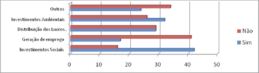 No que tange a percepção dos funcionários, expomos algumas justificativas que poderiam embasar esta percepção, dentre as quais a opção dos investimentos sociais foi a maior fomentadora desta imagem, seguida dos ambientais e da distribuição dos lucros, entre outros. Para o público interno, a divulgação dirigida, proporciona um aumento da “reputação corporativa”.