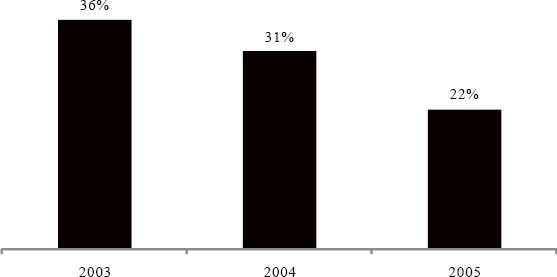 Conforme o SEBRAE (2007), um grande número de micro e pequenas empresas morrem nos primeiros anos de existência apesar da redução do índice de mortalidade nos últimos anos. De acordo com o Gráfico 1 pode-se perceber que, no ano de 2003 esta taxa foi de 36 %, em 2004 de 31% e em 2005 de 22%. Este mesmo estudo mostrou que entre as empresas que encerraram suas atividades em 2005, 14% encerram no primeiro ano (2005), 52% no segundo ano (2006) e 32% no terceiro ano (SEBRAE, 2007).
