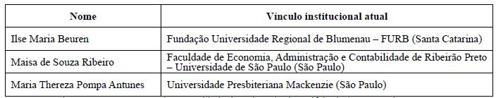 Merece especial destaque a identificação das três autoras que registraram as maiores quantidades de artigos publicados nos eventos analisados: Ilse Maria Beuren, Maisa de Souza Ribeiro e Maria Thereza Pompa Antunes.