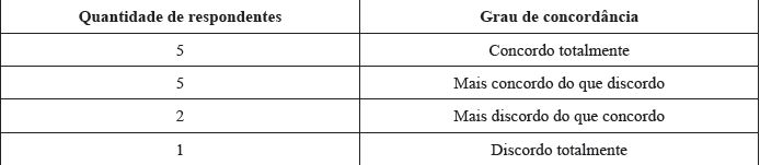 Essa seção destina-se a apresentar as análises dos resultados da pesquisa. A seguir ilustram-se as respostas dos especialistas juntamente com comentários extraídos das entrevistas.