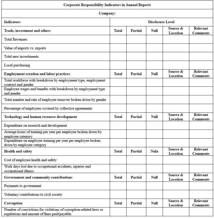 To quantify the level of disclosure of each CSR indicator in relation to UN recommendations, the information collected from company reports was scored as follows: