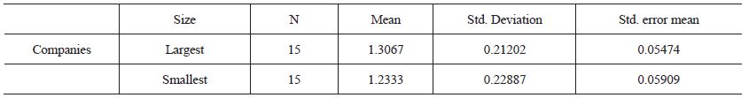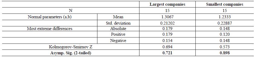 The distribution of the data collected for the variables ‛largest companies’ and ‛smallest companies’ was normal (p = 0.72 and 0.89) (see Table 3).