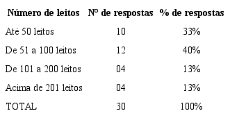 Para melhor compreensão das características observadas nos hospitais pertencentes à amostra pesquisada, a Tabela 4 classifica os hospitais da amostra por número de leitos.