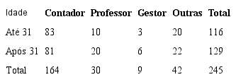 Já em relação à profissão, 164 respondentes exercem a função de contador, 30 são docentes de graduação, 9 gestores e 42 exercem outras funções, como controladoria, auditoria, e funções públicas. Quanto à profissão, o respondente, poderia marcar mais de uma, por isso, o total de 245. No que diz respeito à faixa etária, a média foi de 36 anos, a mediana de 31, sendo a idade do profissional mais novo, 22, e do mais velho, 69 anos. Quando agrupada a idade pela mediana, observa-se que há uma predominância de professores e gestores com mais de 31 anos, 100% superior aos de idade igual ou inferior a 31.