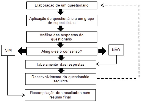 Na construção da Métrica de Qualidade da Informação Contábil (MQIC) foi considerada a percepção dos analistas fundamentalistas, a fim de incluir nela itens cuja relevância fosse apontada por este grupo de usuário das informações. Para tanto, foi empregada a técnica Delphi, a qual, de acordo com Wright e Giovinazzo (2000), consiste na aplicação de questionários a um grupo de especialistas em determinado assunto, em busca de um consenso entre suas respostas. Se necessário, a aplicação do questionário pode ser feita em várias rodadas até que se obtenha a consolidação entre o julgamento de cada indivíduo em relação ao grupo. O processo operacional da técnica Delphi, é apresentado na Figura 1.