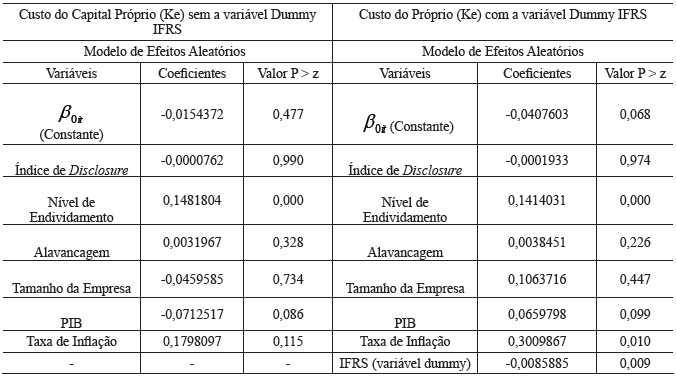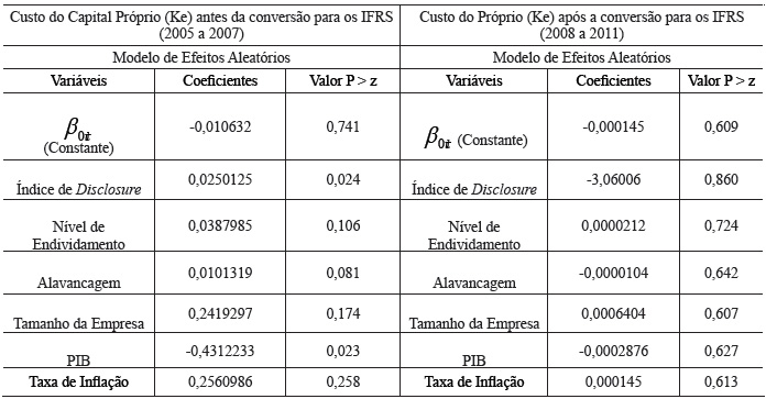 Esses resultados também estão de acordo com a hipótese nula em que o nível de divulgação das informações contábeis após a conversão dos IFRS não impacta o custo de capital próprio da amostra de empresas analisadas nesta pesquisa.