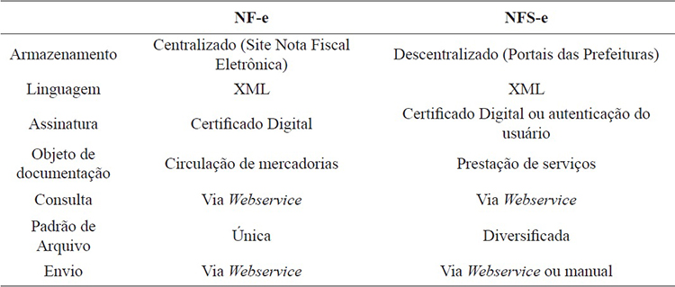Segundo Confederação Nacional do Comércio de Bens, Serviços e Turismo, a Nota Fiscal Eletrônica (NF-e) é um documento digital (arquivo XML), emitido e armazenado de forma eletrônica, com o objetivo de documentar, para fins fiscais, uma operação de circulação de mercadorias ou uma prestação de serviços, ocorrida entre as partes. A validade jurídica da NF-e é garantida pela assinatura digital do remetente a consequente autorização de uso fornecida pelo fisco, antes da ocorrência do fato gerador. Já a Nota Fiscal Eletrônica de Serviços (NFS-e) é um documento de existência digital, gerado e armazenado eletronicamente em ambiente de TI Nacional pela Receita Federal, pela prefeitura, por outra entidade e/ou órgão público conveniado, para documentar as operações de prestação de serviços (DUARTE, 2009).