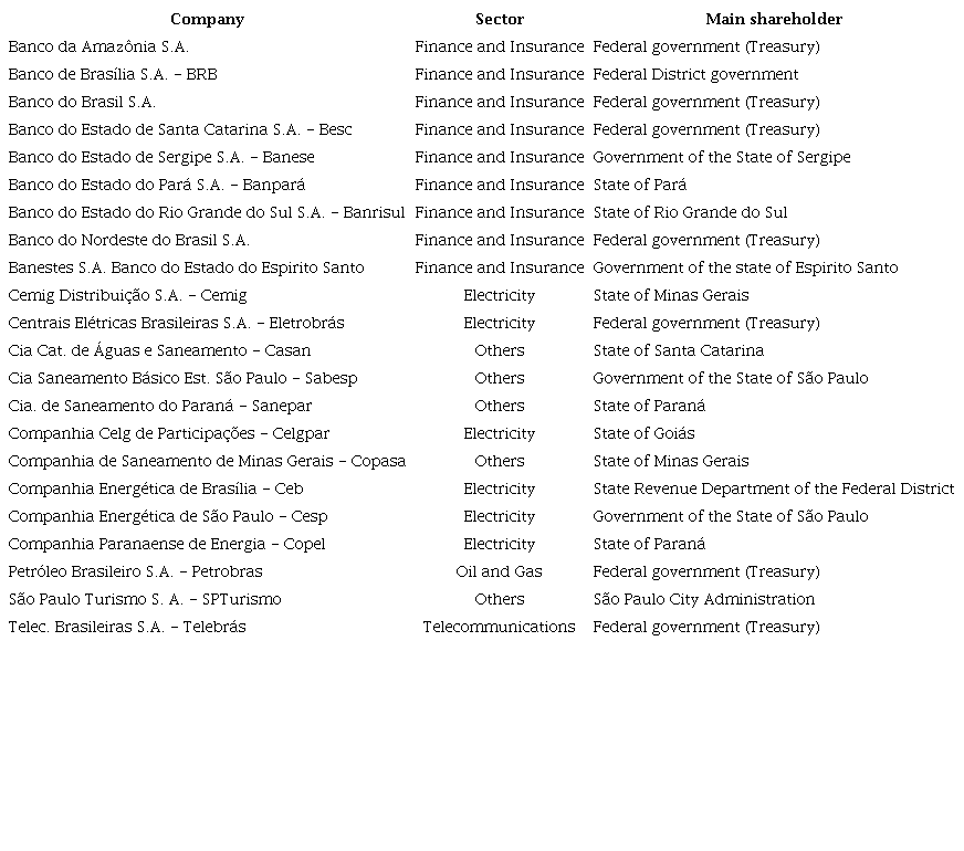 The field of study for this research was Brazilian companies that are listed on the B3. It was conducted to analyze the impact on the value of company shares resulting from the disclosure of company information. The sample also comprises the mixed-capital companies described in Table 1. For the statistical tests, Banco do Estado de Santa Catarina S.A. (Besc) was removed from the sample, due to the lack of observations for the necessary variables.