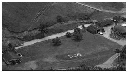 In the aircraft, it was possible to transport, in addition to Matheus and the pilot, four more people. With new landslides, rescue via land transport was still impossible, and, in some places, air access was also complicated. On the way to the water park, Matheus and the pilot passed the area of Morro do Baú, one of the most affected by the tragedy, resulting in many deaths. At 819 meters high, the hill was home to several communities, who saw their lives sliding away in a pile of mud. As they flew over the Morro do Baú area, they spotted a group of residents asking for help, writing S.O.S. on the floor (Figure 3).