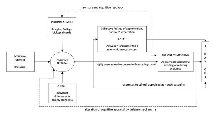 As shown in Figure 1, the cognitive appraisal of an external stimulus causes the activation of the A-State and activates the body’s defense mechanisms. This appraisal can trigger a sequence of behaviors, which cause, for example, the individual to avoid the situation, or use defensive maneuvers (Spielberger, 1966). Bringing this information to the educational context, it is clear that avoidance behavior is detrimental to performance, as it acts contrary to the establishment of goals, in the same way that exaggerated activation of the autonomous nervous system can impair learning.