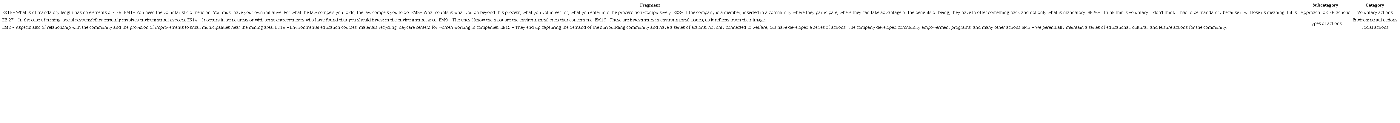 Emphasizing the responsibility that the mining company has for local communities, EM1 comments: "From the moment you are seeing that region, you are living in that region, I think it is necessary to think what the business can do to improve the life of that community, within the limitations that the company has". When asked about what limitations EM1 had referred to, they stated that, in addition to the financial constraints, it should not be up to the organization to perform actions that are a duty of the state. Table 3 highlights the meanings that CSR has for the different actors.