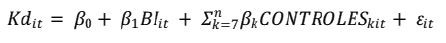 The β1 coefficient captures the relationship between the variables “debt capital cost” and “board interlocking” (BI), and a significant and negative relationship between them was expected. The βk coefficient represents the model’s control variables. Model 2 should confirm or not the second research hypothesis.