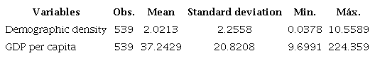Demographic Density: comprehends the relationship between the number of inhabitants and the territorial area. Larger municipalities have greater capital circulation and therefore possess a better financial condition due to the greater opportunities to exploit their tax base.