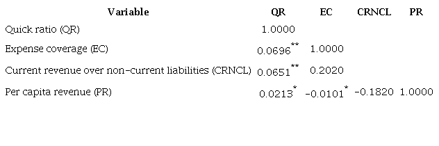 By using the Pearson’s correlation test, significant correlations were found between the variables, see Table 2. The strategy of formulation of composite indicators to better represent Financial Condition is thus validated, as indicated in the literature, in studies like Wang et al. (2007), Clark (2015), Justice et al. (2019) and Maher et al. (2020).
