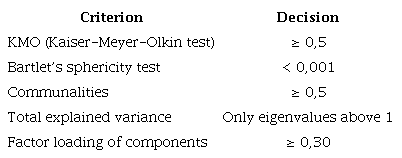 Thus, to obtain the financial condition composite indicator, the present study employed exploratory factor analysis as a means to empirically find the representative factors of this construct. Therefore, we sought to build factors that met the decision criteria postulated by Corrar et al. (2007) and Fávero and Belfiore (2017), as shown in Table 3.