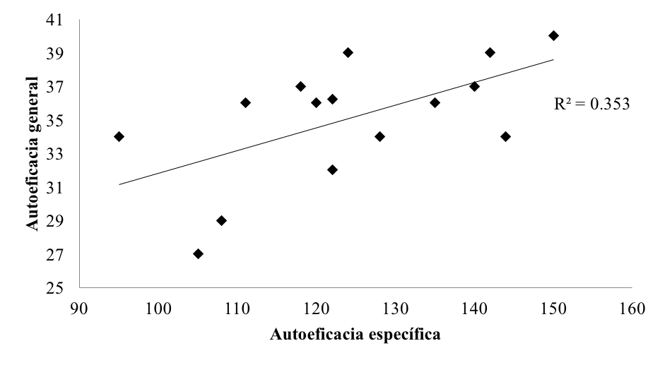 Con respecto a la correlación entre autoeficacia general y autoeficacia específica, Telletxea, citado por González et al. (2014), indica que después de algunos fiascos, pueden aparecer rápidamente dudas sobre sí mismo, aclarando que algunas personas recobran su sentido de eficacia, mientras que otras pierden la fe que tenían en sus capacidades. En esta investigación los dos constructos presentaron valores relativamente altos y mostraron correlaciones positivas, lo cual podría indicar que el desarrollo de la autoeficacia, en diversas áreas de la vida, avanza de manera similar en el ámbito del deporte que practican los jóvenes de esta muestra.