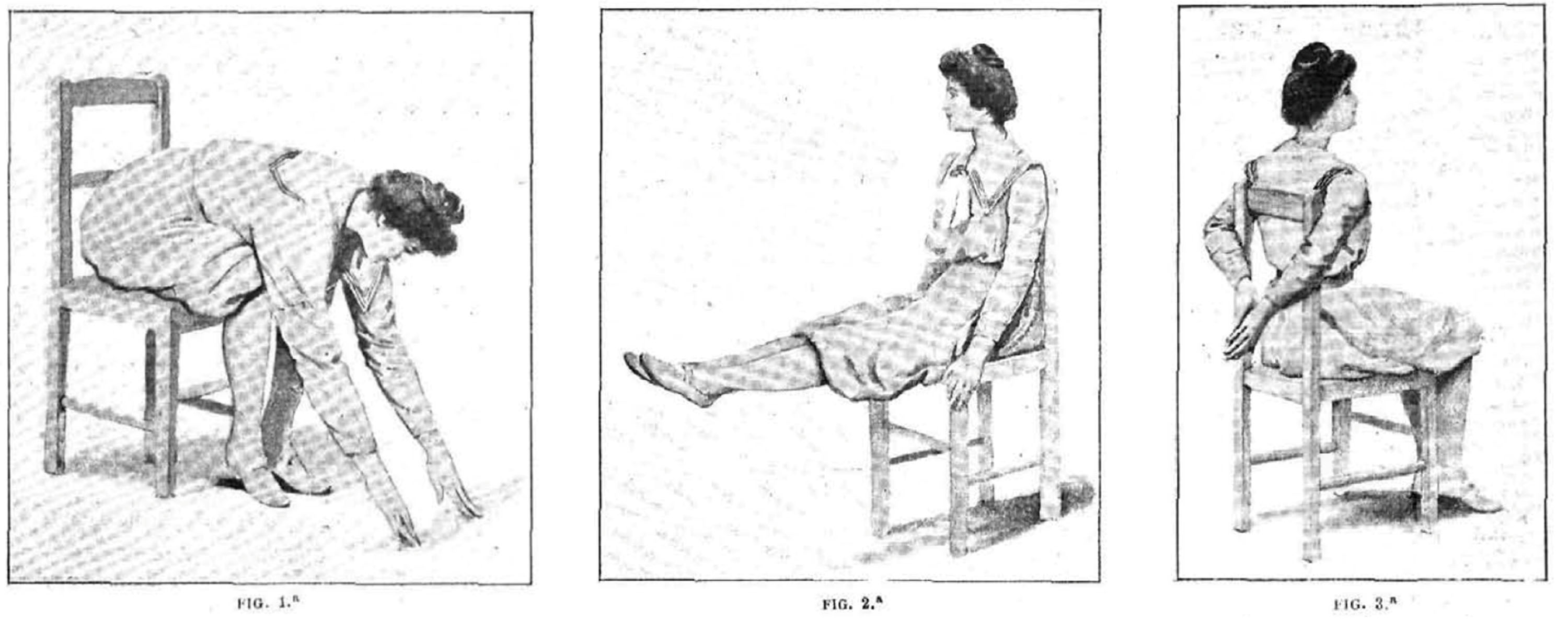 En definitiva, hay que reconocer que la industria gimnástica ingenió aparatos para facilitar el ejercicio, no obstante, la solución podía encontrarse en una simple silla o en la divulgación más popular de la gimnástica librada de todo cientifismo y sofisticación técnica; dicho de otro modo, se trataba de regresar al sentido común (Figura 32):