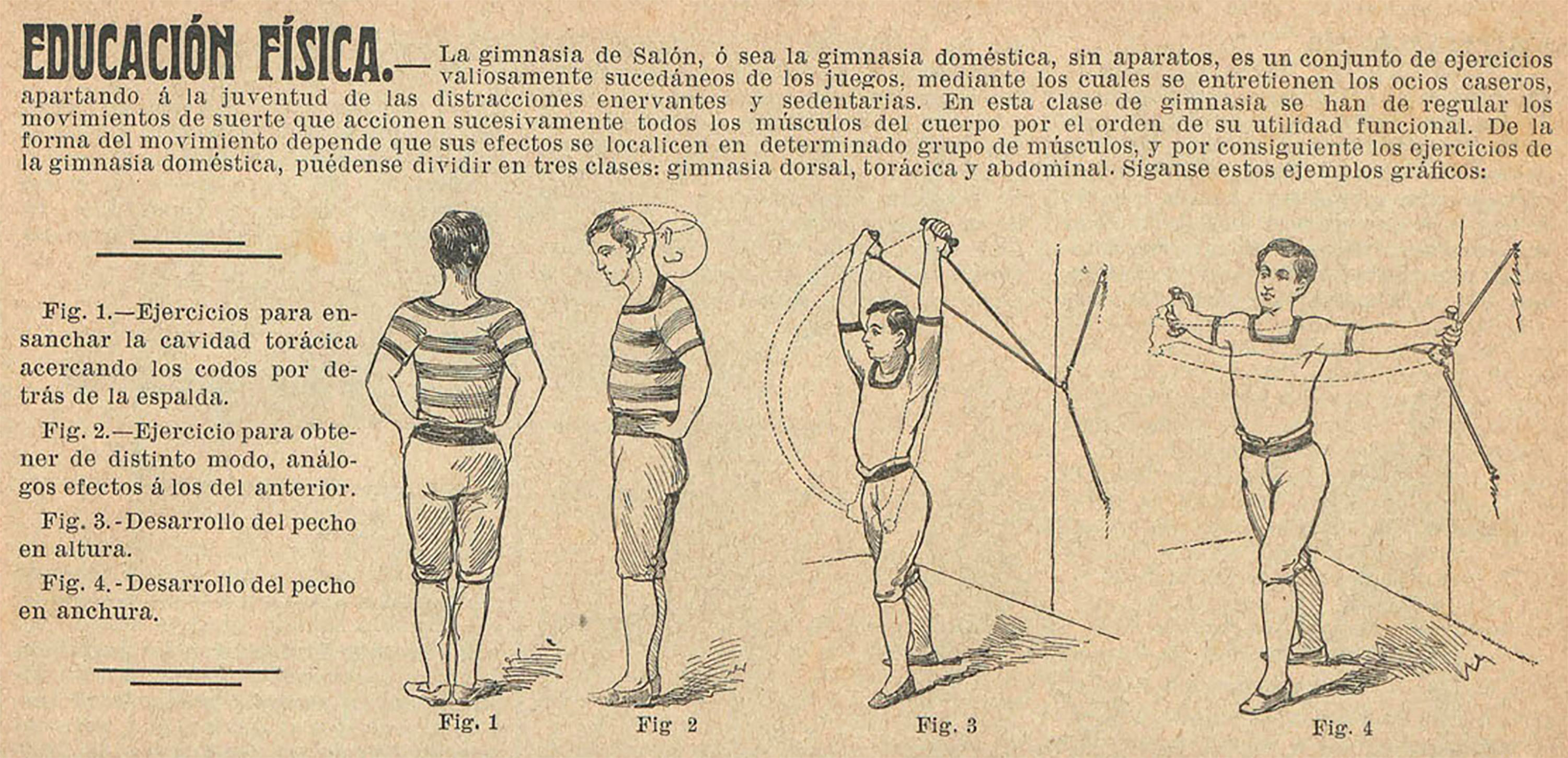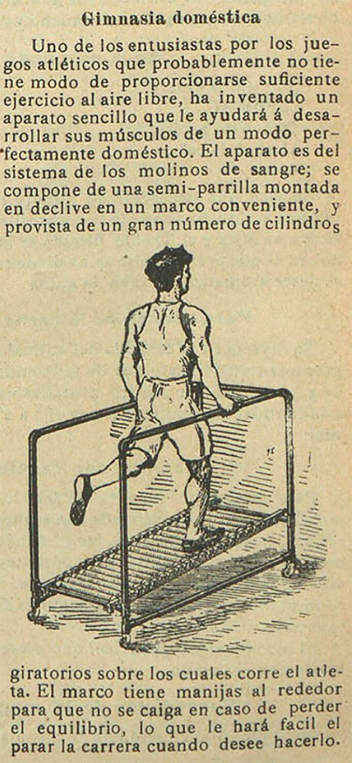 Con ello, si el gimnasio resultaba caro, peligroso o simplemente no había tiempo para asistir a él; como mencionaba Luis Taboada en El Imparcial y en El Diluvio de Barcelona (30 de junio de 1892, pp. 1-2), allí estaba, al alcance de todas las personas, la posibilidad de hacerse con la gimnasia casera: