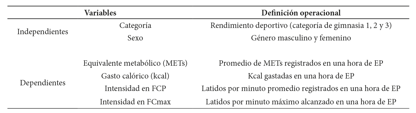 Para recolectar la información de los entrenamientos de rutinas completas se emplearon acelerómetros triaxiales (medición en 3 ejes) ActiGraph modelos wGT3X-BT (ActiGraph, Maastricht, Bélgica). Estos dispositivos muestran los METs y, a partir de esta unidad de medición, también calculan el gasto calórico (kcal). Los METs son la unidad de medida del equivalente metabólico; corresponde a 3.5 ml / kg min, el cual es el consumo mínimo de oxígeno que el organismo necesita para mantener sus funciones vitales. Un rango de 1.0-1.5 METs se evalúa como conducta sedentaria, de 1.6-2.9 METs como actividad de intensidad baja, de 3-5.9 como actividad de intensidad moderada, y >6 METs como actividad de intensidad vigorosa.