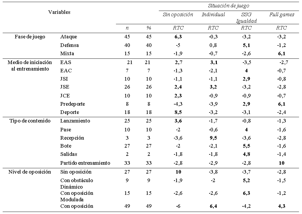Method: For this, a total of 20 training sessions consisting of 100 tasks, recorded through the Comprehensive System for the Analysis of Training Tasks, were analyzed. A descriptive and inferential analysis was carried out between the variables raised in the research in relation to the Game Situation.