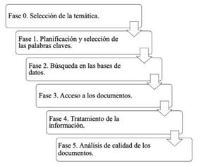 El procedimiento de búsqueda y selección de documentos empleado para el de sarrollo de este trabajo es similar a los existentes en previas revisiones sistemáticas de la literatura científica en el ámbito de las Ciencias del Deporte (Gámez-Calvo et al., 2022; Hernández-Beltrán et al., 2022), puesto que es una metodología sencilla y fácil de utilizar. En la Figura 2, se muestra las fases del proceso de búsqueda ejecutadas para el desarrollo de este trabajo.
