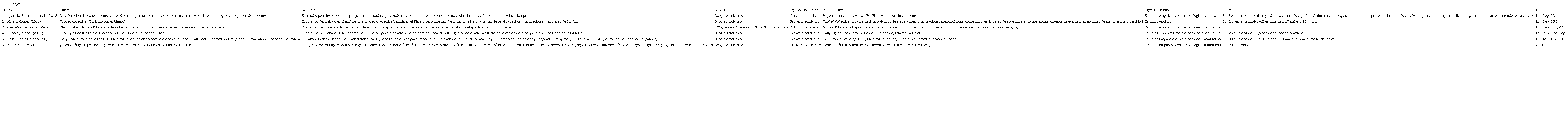 En función al nivel educativo, se muestra el mismo número de documentos relacionados con la etapa de Ed. Prim (n=3), que con la etapa de ESO (n=3). Siendo, los documentos de Aparicio-Sarmiento et al., (2018), Cubero Jiménez (2020), y Rivera-Mancebo et al., (2020), los centrados en alumnos de 6 a 12 años (Ed. Prim.), y los manuscritos de Moreno-López (2019), De la Fuente Ostos (2020), y Puente Gómez (2022), son aquellos estudios que se centran en el alumnado de la ESO. Por tanto, se recomienda realizar trabajos que se apliquen al aula de Ed. Fís., con la finalidad de mejorar los diseños de las programaciones didácticas, unidades didácticas, y sesiones teórico-prácticas para la enseñanza-aprendizaje del Ringol. Además, se recomienda diseñar situaciones de aprendizaje entre 6 y 8 sesiones, con la finalidad de no desmotivar al alumnado con la repetición de contenidos, con el fin de desarrollar los objetivos propuestos por el docente.