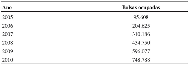 Ao final do governo Lula, segundo balanço oficial, foram contabilizados 748 mil estudantes com bolsas do ProUni, sendo 69% com bolsas integrais. Desse total, 48% são afrodescendentes. Dentre estes, 5.194 estudantes receberam bolsa permanência, no valor de R$ 300,00, destinada a alunos que realizam cursos de período integral (mais de seis horas diárias). Os dados de 2010 indicavam que havia 462 mil bolsas em utilização e 116 mil estudantes com a graduação concluída como bolsistas do ProUni ( Tabela 2) 18.