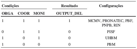 Fórmula 4 (minimização das configurações de casos com resultado OUTPUT_DEL {1}, sem restos lógicos):