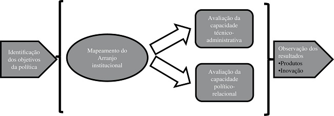 A Figura 1 ilustra o modelo analítico desenvolvido, o qual associa os resultados observados de uma determinada política às capacidades estatais geradas pelo seu arranjo institucional.
