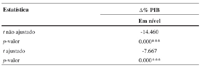 Por seu turno, por meio de um teste para identificar a raiz unitária na série histórica original, observou-se que esta já apresenta estacionariedade em nível. Considerando que os dados se constituem em um painel balanceado, e os modelos de estimação não apresentam variáveis exógenas, efeitos fixos e efeitos fixos individuais e tendência, recorreu-se ao teste de raiz unitária de Levin-Lin-Chu (LLC), com a configuração sugerida por Baltagi (2013). Os resultados do teste LLC podem ser observados na Tabela 1 com a variável dependente apresentando-se estacionária em nível, com significância estatística abaixo de 0,01%.