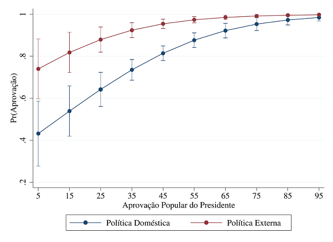 As discussões sobre o sucesso legislativo do presidente têm considerado sua aprovação popular como uma importante variável. Um elevado apoio popular diminui os incentivos de os legisladores se oporem às medidas do Poder Executivo, em função do elevado custo eleitoral (Rudalevige 2002). A relação positiva entre aprovação popular do presidente e aprovação legislativa foi encontrada nos casos do Brasil (Mainwaring 1997), Uruguai (Altman 2000) e Argentina (Calvo 2007).