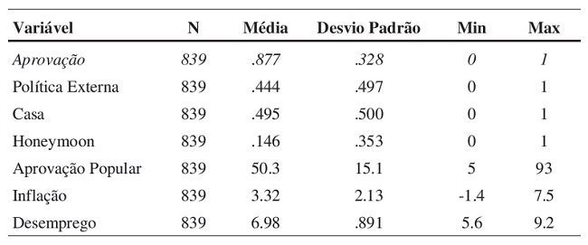 Seguindo a lógica do voto econômico (Anderson 2000) nos regimes presidencialistas, o presidente tende a ser responsabilizado pelo desempenho da economia do país (Samuels 2004). Quando indicadores econômicos sensíveis ao eleitorado deterioram, os legisladores têm mais incentivo a rejeitar as políticas presidenciais em busca dos votos de eleitores descontentes com o governo, diminuindo o sucesso legislativo do presidente (Brace & Hinckley 1992; Prins & Shull 2006). A relação entre desempenho econômico e sucesso legislativo se fundamenta no eleitorado, ou, ao menos, na percepção dos legisladores sobre as preferências do eleitorado em relação ao governo. Dentre as variáveis relevantes na definição do apoio eleitoral do presidente no nível macroeconômico, destacam-se a inflação (Norpoth 1996) e o desemprego (Henisz & Mansfield 2006). Assim, a quinta e a sexta hipóteses são relacionadas: 5) o índice de inflação está negativamente relacionado com a aprovação das iniciativas legislativas do presidente; (6) o aumento da taxa de desemprego diminui o sucesso legislativo do presidente.
