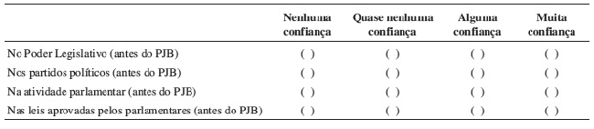 A elevação no nível de conhecimento aparenta ter reflexos na confiança política no Poder Legislativo, reforçando o pressuposto de que a promoção da cultura cívica pode favorecer a legitimidade da própria democracia. Contudo, essa mudança de atitude em relação às instituições políticas não ocorre de forma abrangente, já que os partidos políticos recebem certo crédito dos jovens logo após o aprendizado acerca do funcionamento do Parlamento, mas a percepção de confiança nas legendas diminui consideravelmente no tempo. Esses resultados são congruentes com a análise de Fuks (2014) acerca de efeitos do Parlamento Jovem Mineiro, que constata variação positiva na confiança política em relação à ALMG, porém em menor grau em relação aos partidos políticos, bem como aumenta-se o interessa na política e a exposição à informação política.