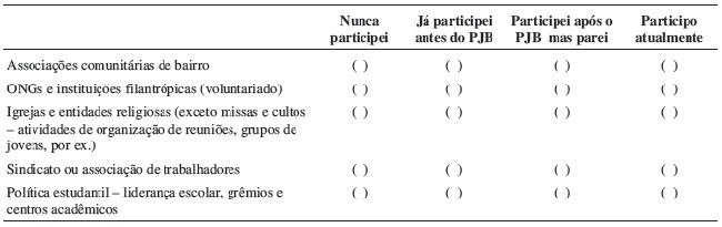 ( ) passei a ter o costume após o PJB, mas não costumo mais