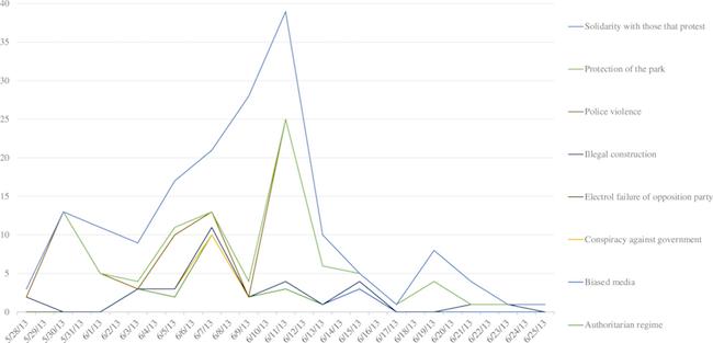 The article builds on these insights through a close analysis of social media communications during the 2013 protests in Brazil and Turkey. In doing so, the article uses the concept of event to make sense of the multiple and competing narratives and rationales about the protests. We focus on the online conversations about the protests on four Facebook pages during the first 30-days of the protests in both countries. We ask: How did they frame/explain the causes and rationalities behind the protests? How did the framing contestations evolve over time? Which frames were dominant? How were they related to the past and the future?
