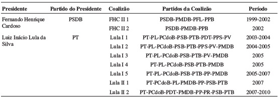 Figueiredo, A., 2007. Government Coalitions in Brazilian Democracy. Brazilian Political Science Review, vol 1(2), pp.182-216.