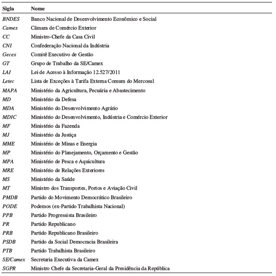 Palavras-chave: presidencialismo de coalizão, instituições políticas, Poder Executivo, Camex, comércio exterior.