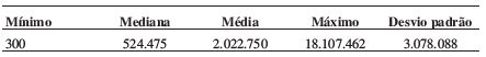Os dados indicam elevada amplitude entre as arrecadações, com a menor prestação de contas indicando o recebimento de apenas R$ 300 contra R$ 18,1 milhões da maior receita. Além disso, o desvio padrão indica uma alta heterogeneidade entre os candidatos, com um coeficiente de variação de 152,2%. Uma outra característica dos dados é a concentração de casos abaixo da média, já que a mediana é quase quatro vezes menor do que ela – ou seja, dos 134 candidatos, metade deles (67) recebeu menos do que R$ 524.475 em doações.