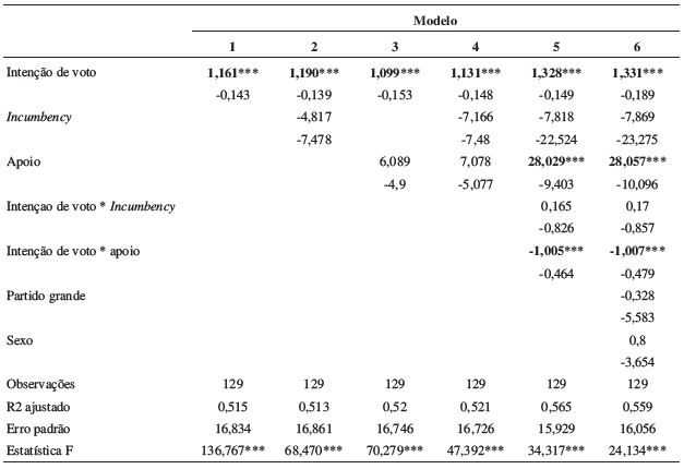 β4 = interação entre intenção de voto e incumbent